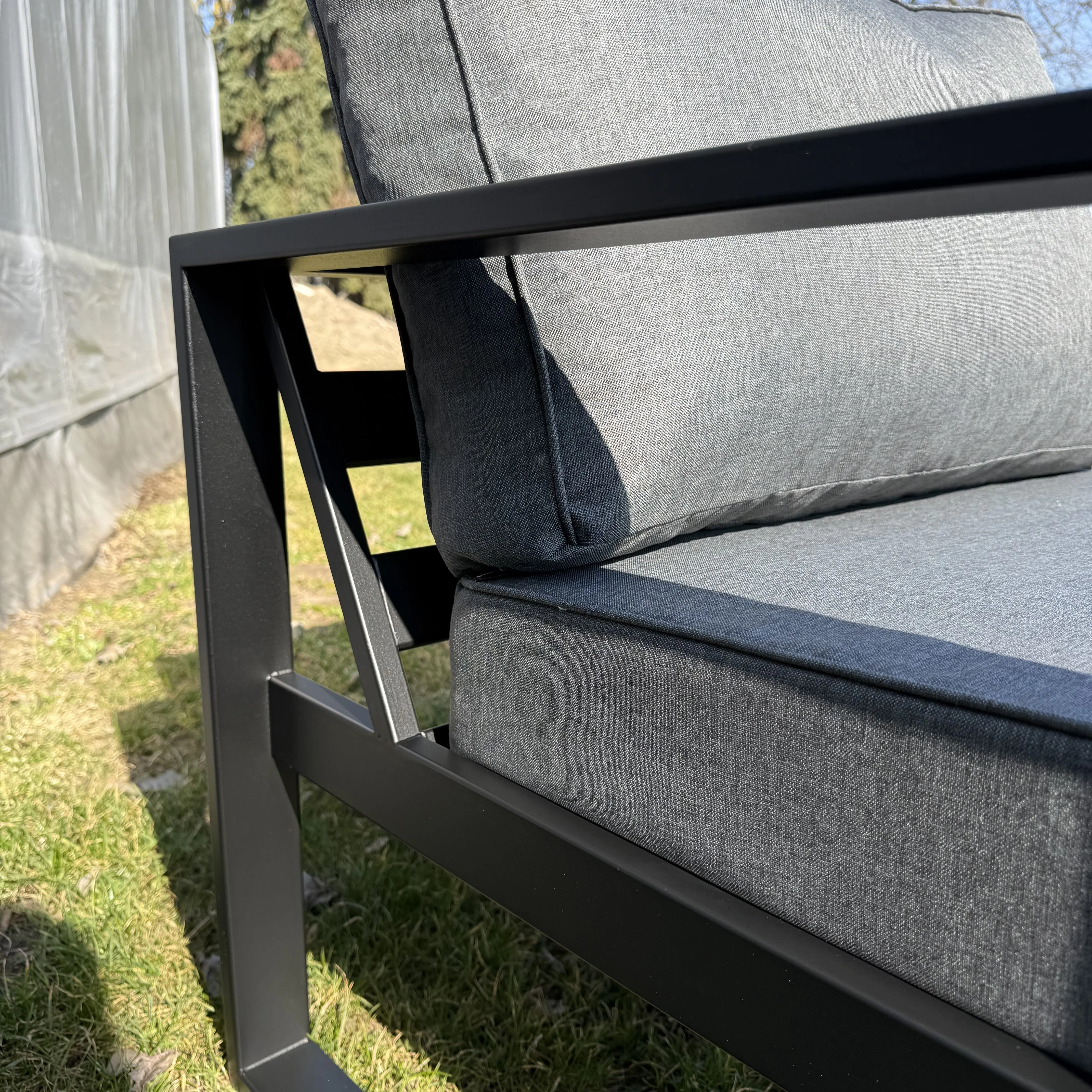 Sofa ogrodowa LINEA 3-osobowa to propozycja dla osób, które chcą stworzyć komfortową i stylową przestrzeń do wypoczynku na zewnątrz. Jej nowoczesna, metalowa konstrukcja w połączeniu z prostą formą doskonale wpisuje się w estetykę loftową i nowoczesną.