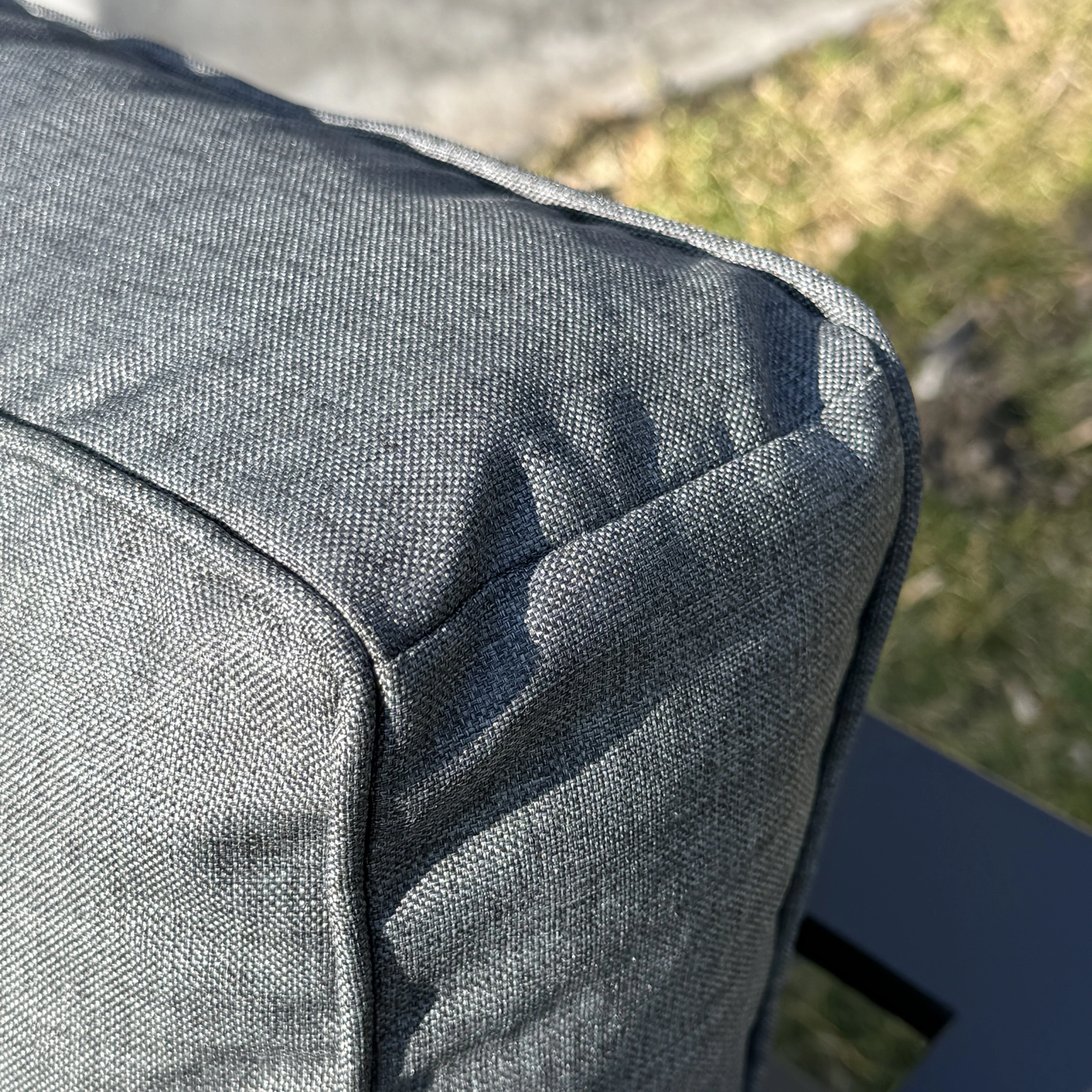 Tkanina przypominająca w dotyku grubą bawełnę łączy klasyczny wygląd z praktycznymi właściwościami – jest miękka i przyjemna w dotyku, wodoodporna oraz odporna na działanie promieni słonecznych. Gładki design i jednokolorowy splot sprawiają, że materiał doskonale wpisuje się w każdy ogród, zapewniając elegancki i nowoczesny wygląd mebli.