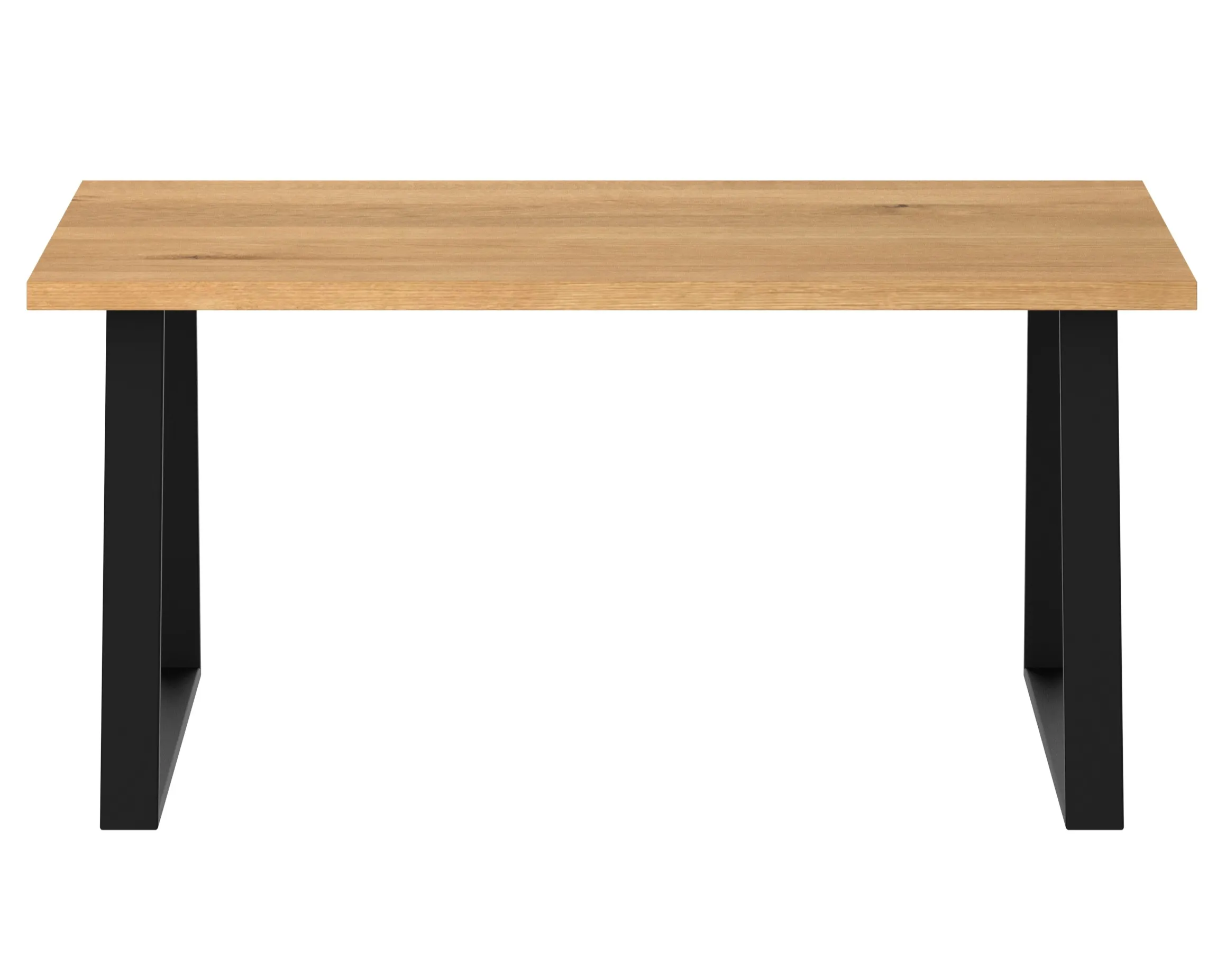 Konstrukcja oparta na dwóch nogach w formie trapezu nadaje stołowi stabilność i wyjątkowy, dynamiczny charakter. Stalowe nogi o profilu 8×2 cm, malowane proszkowo na czarny mat drobna struktura (RAL 9005), podkreślają industrialny styl i zwiększają odporność na uszkodzenia.