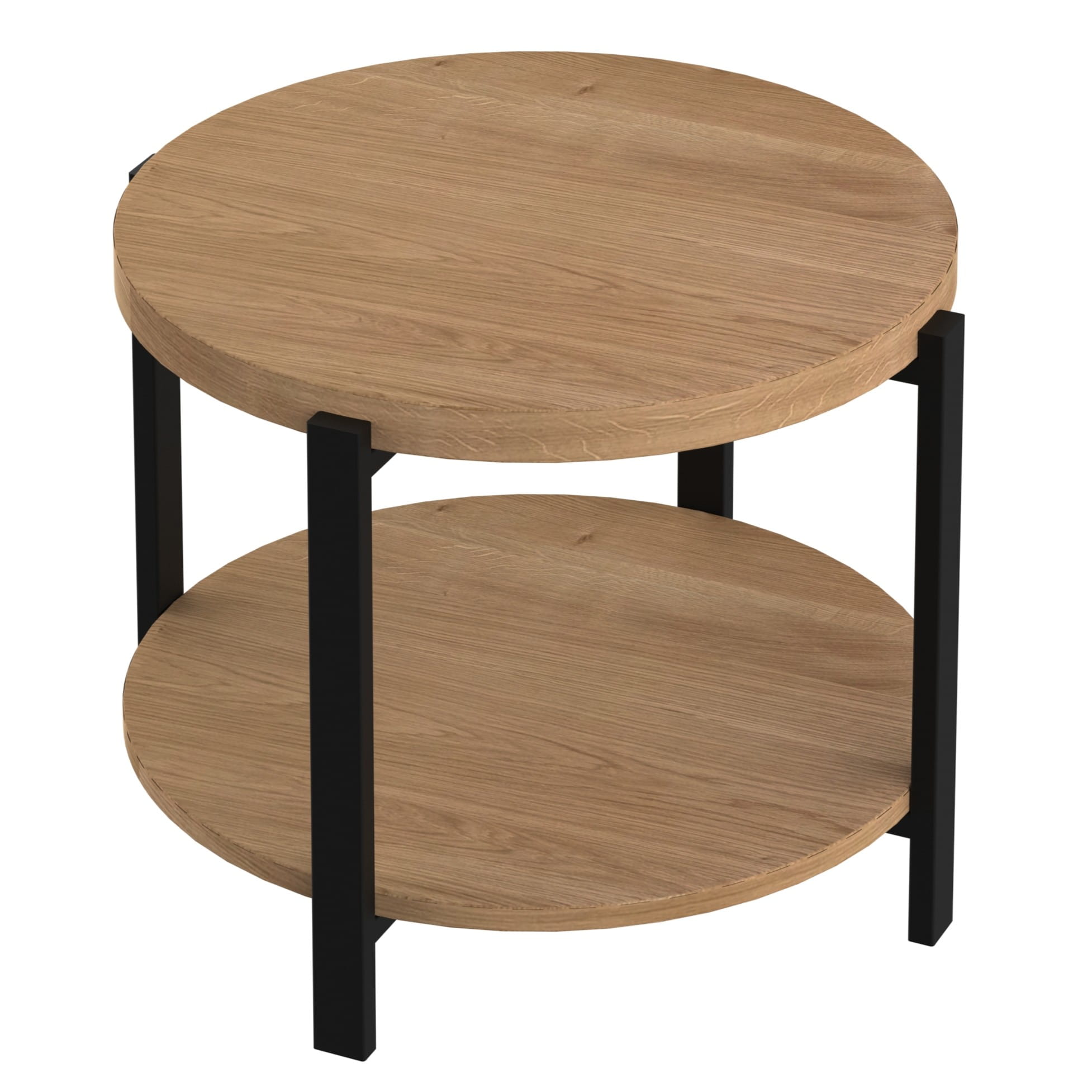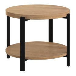 Stolik kawowy AURA - okrągły stolik z półką i metalowym stelażem